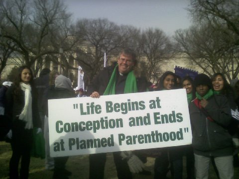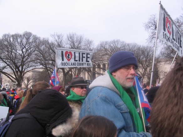 In the line of march, the Rockland contingent met up with an old friend, Rev. Brendan Gormley, formerly of St. Paul’s in Congers, now serving at St. Barnabus in the Bronx. Father Brendan was one of the Rockland bus captains for last year’s March and had said mass for the group in Washington.