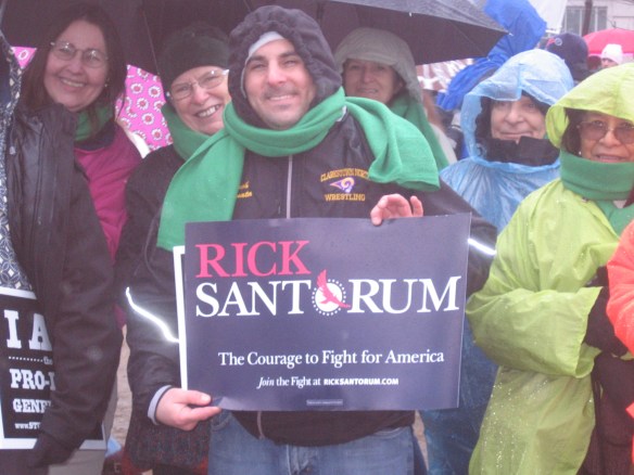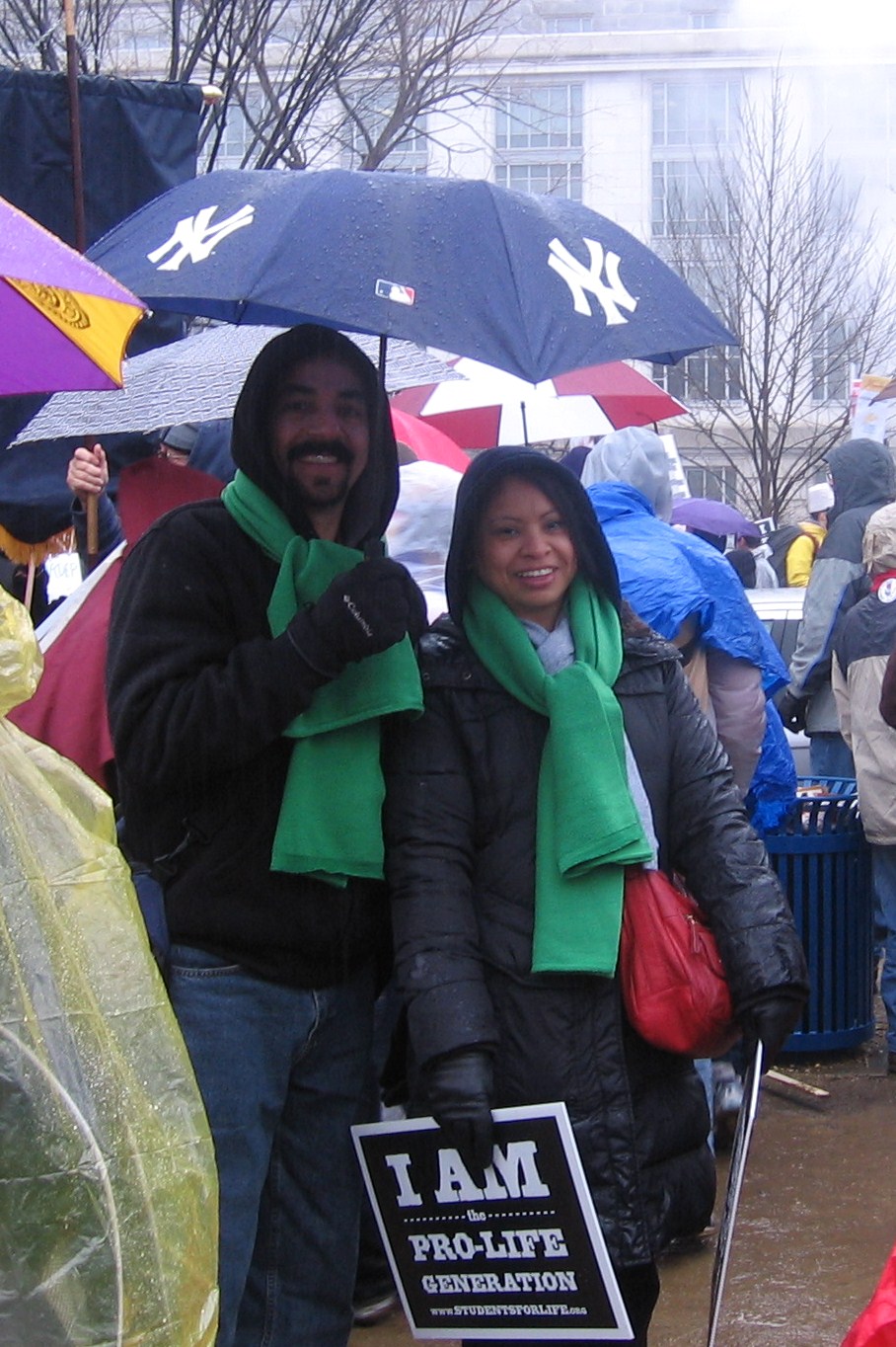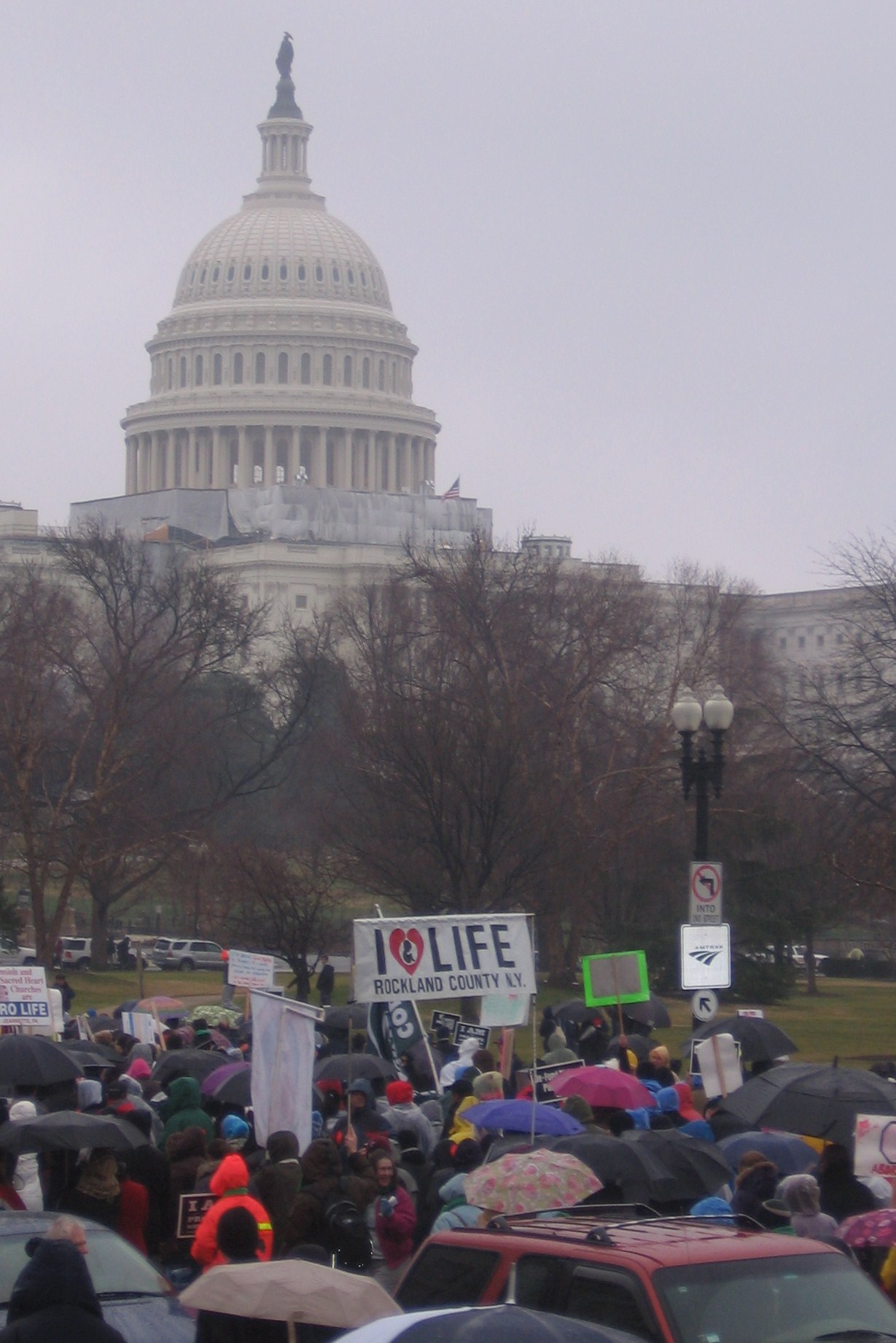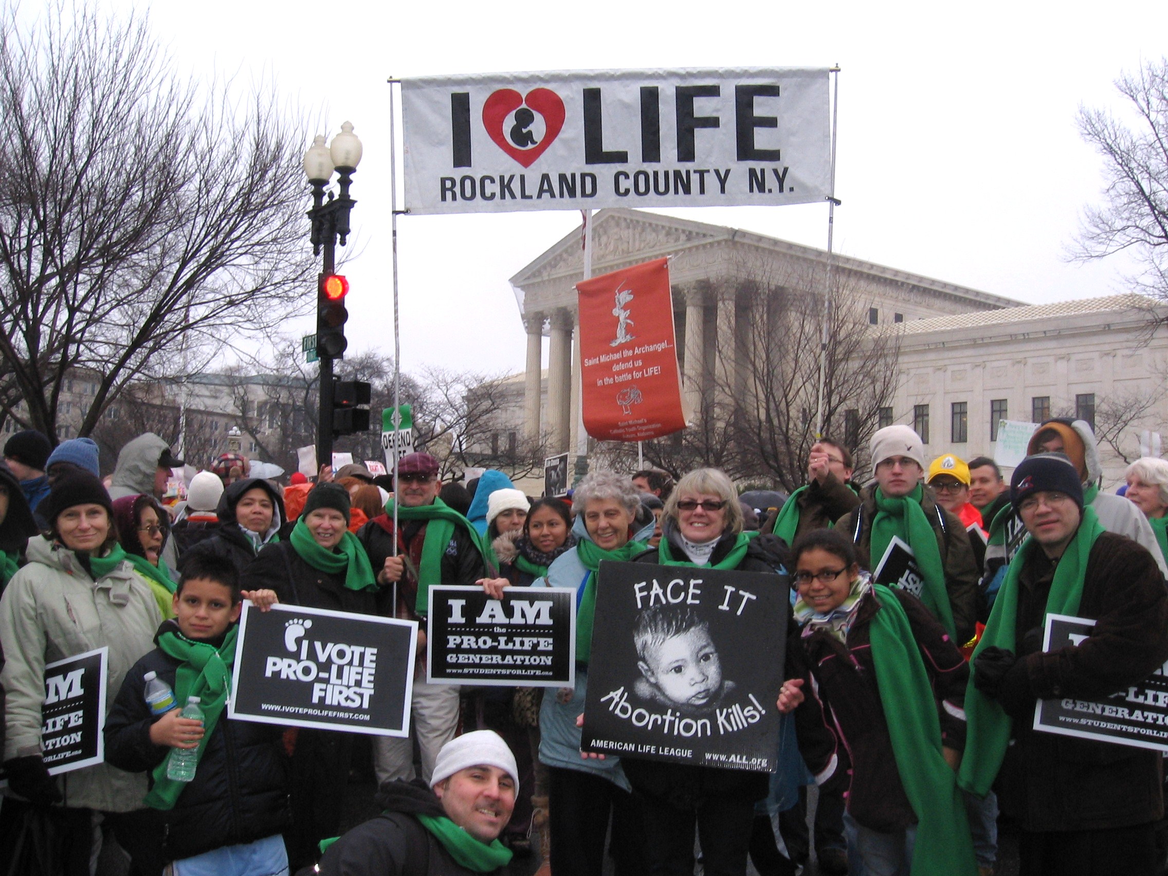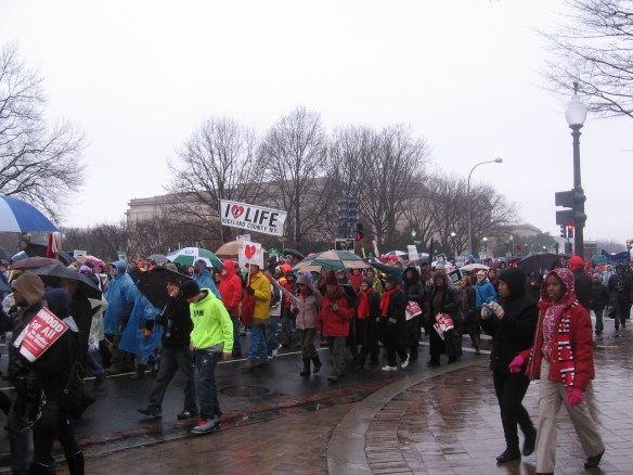 We put our now iconic Rockland Right to Life banner together. It’s a wonderful concoction by the late Tom Niblo – and getting the poles and banner together is our first challenge in D.C. each year. Walking to the Mall we see other banners from Pennsylvania and Missouri and North Carolina. People shout hello to the “New Yawka’s” and one man, happy to strike a note of introduction, tells me he lived in New York before moving to Massachusetts.