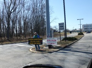 A committed prolifer carried his message about Planned Parenthood to Rockland Community College on Sunday, March 11. That’s where the nation’s largest abortion provider was to be found that afternoon, handing out their propaganda to the children of Rockland attending the County YouthFest. His signs provided some serious food for thought as the festival-goers approached the campus. They read “Planned Parenthood Will Kill 1000 Babies This Week” and “Planned Parenthood Is Aiding and Abetting Underage Sex Trafficking With Your Tax $.”
