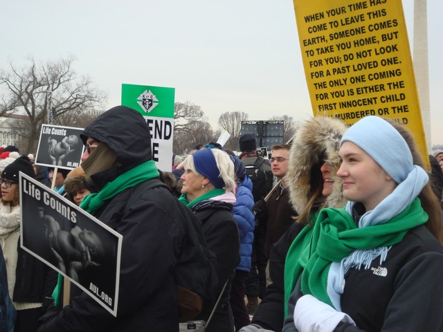 In this part of our March for Life coverage, you’ll see the marchers of the Sacred Heart bus at the Rally. The quotes under the photos are from the speakers.