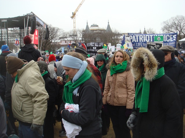 The March for Life Rally, is where it all begins. Here before a stage erected near 7th Street in the National Mall, the crowd gathers at noon to hear the words of the leaders of the right to life movement.