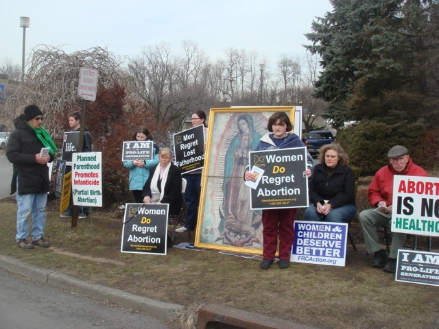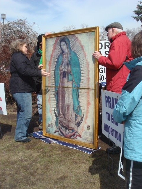 Our Lady of Guadalupe is the patroness of the pro-life movement and a smaller poster of the famous image stands every day at the prayer site in Spring Valley outside the Planned Parenthood office.