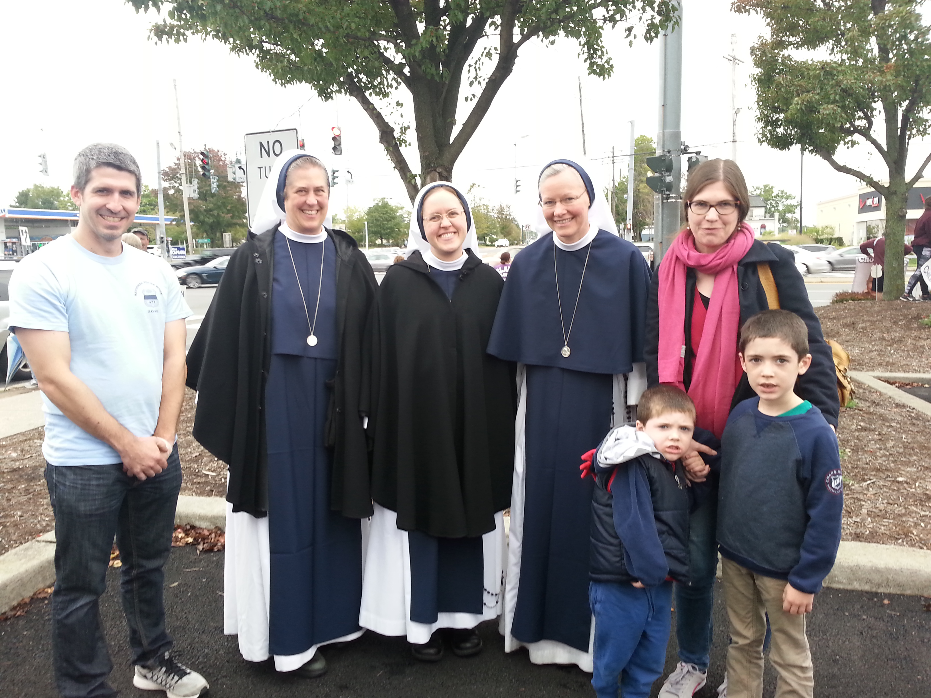 And yet, for a few moments at least, EVERY SINGLE ONE OF THEM saw something that compelled their attention — that crowd of kids on the corner, the graceful nuns in their blue and white garb, the line of men and women of all ages along the roadside.