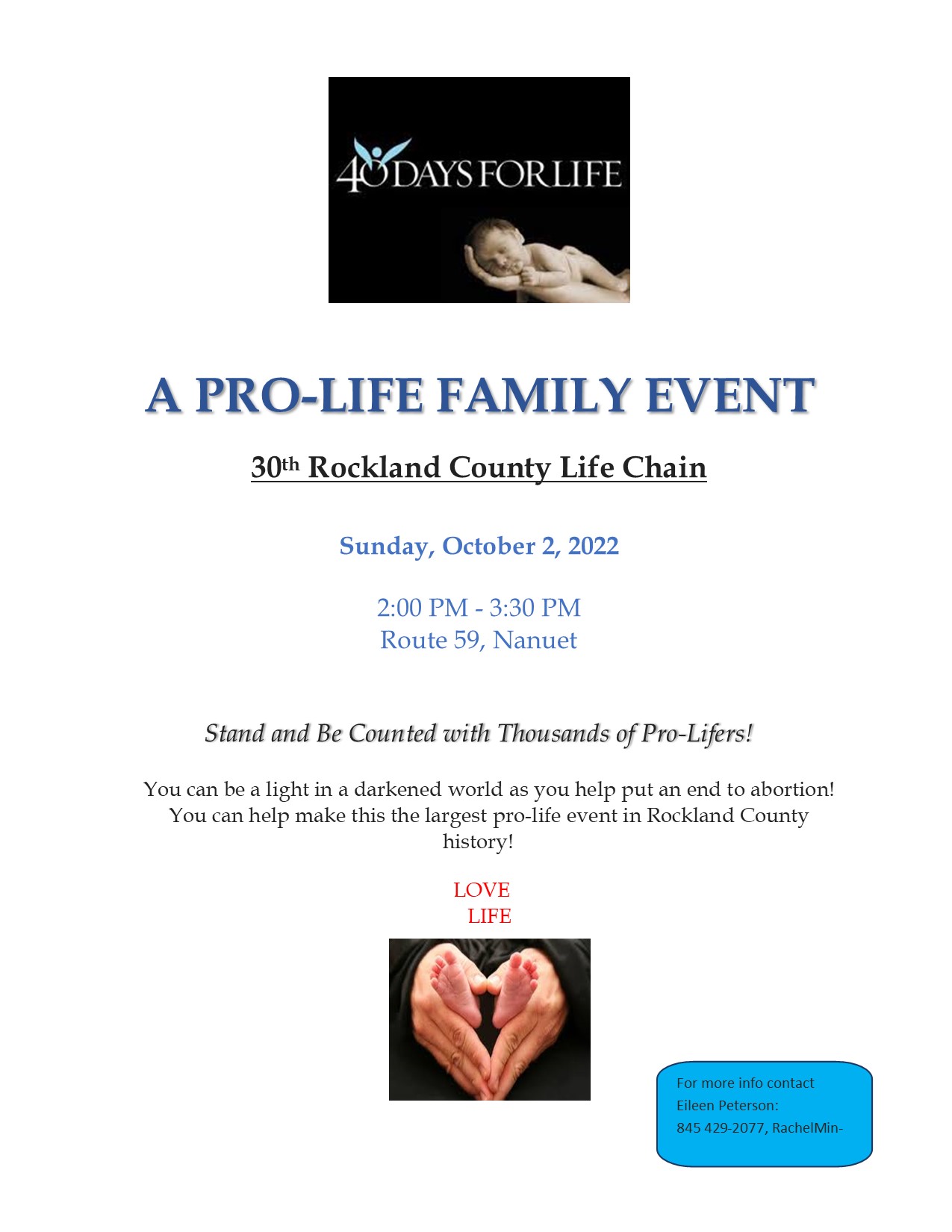 30th Rockland County Life Chain Image Posted on September 18, 2022 by rocklandrtl Share this: Click to share on X (Opens in new window) X Click to share on Facebook (Opens in new window) Facebook Like Loading... Related
