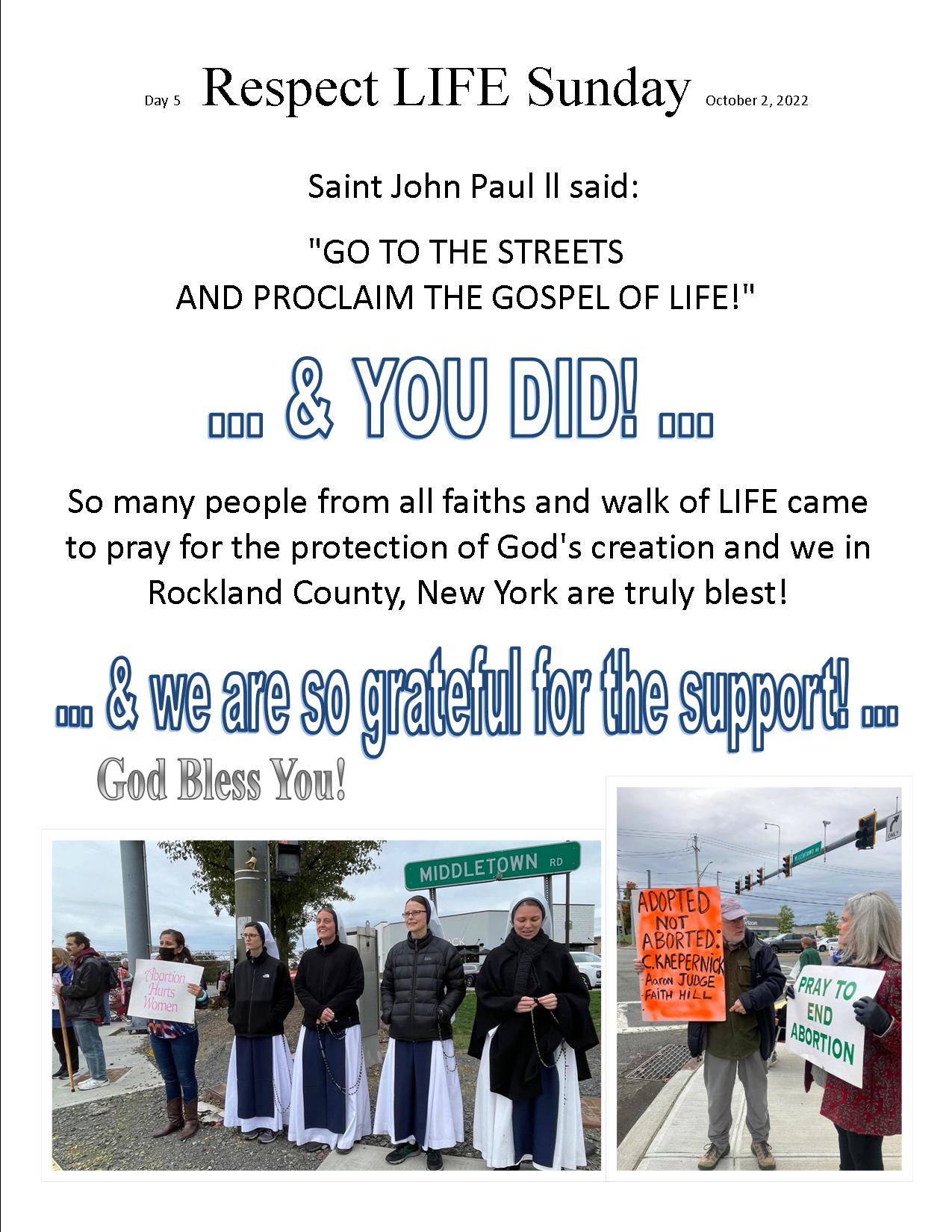 Respect Life Sunday – October 2nd, 2022 – Nanuet, NY Posted on October 3, 2022 by rocklandrtl Share this: Click to share on X (Opens in new window) X Click to share on Facebook (Opens in new window) Facebook Like Loading... Related