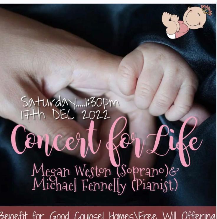 Christopher Bell & the Board of Directors of Good Counsel Invite You to Join Them for A Free Concert for Life