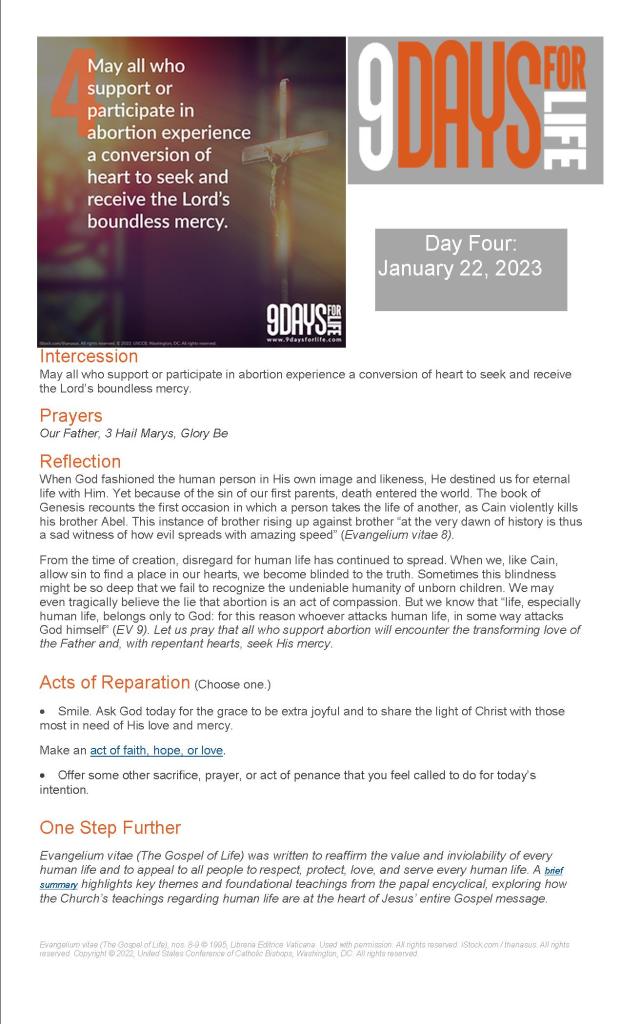 Day 4 – 9 Days for LIFE Novena Image Posted on January 22, 2023 by rocklandrtl Share this: Click to share on X (Opens in new window) X Click to share on Facebook (Opens in new window) Facebook Like Loading... Related
