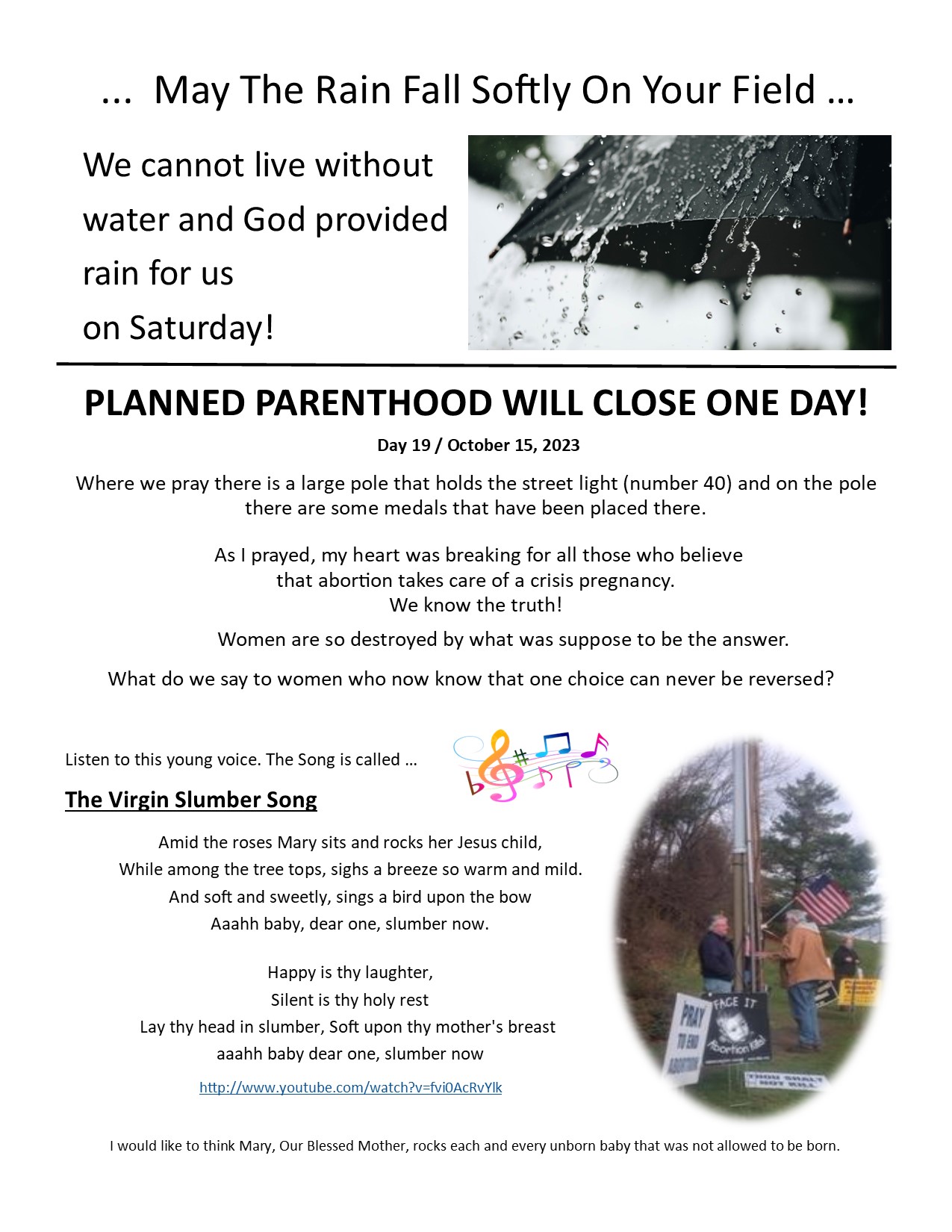 40 Days for Life – Day 18 & 19 Image Posted on October 24, 2023 by rocklandrtl Share this: Click to share on X (Opens in new window) X Click to share on Facebook (Opens in new window) Facebook Like Loading... Related