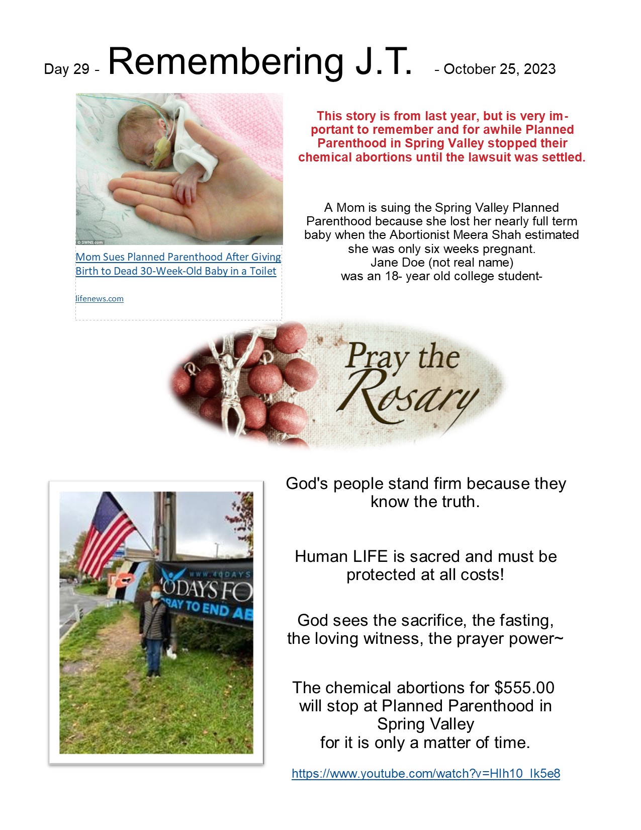 40 Days for LIFE – Day 29 / 10-25-2023 Image Posted on October 27, 2023 by rocklandrtl Share this: Click to share on X (Opens in new window) X Click to share on Facebook (Opens in new window) Facebook Like Loading... Related