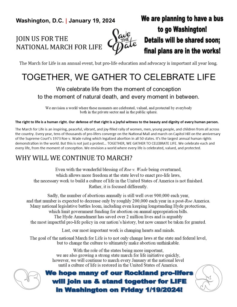 March for LIFE ~ Friday ~ January 19, 2024 Image Posted on November 13, 2023 by rocklandrtl Share this: Click to share on X (Opens in new window) X Click to share on Facebook (Opens in new window) Facebook Like Loading... Related