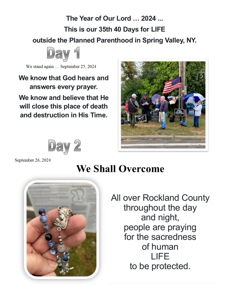 40 Days for LIFE – Fall 2024 – Day 1 & 2 Image Posted on October 2, 2024 by rocklandrtl Share this: Click to share on X (Opens in new window) X Click to share on Facebook (Opens in new window) Facebook Like Loading... Related