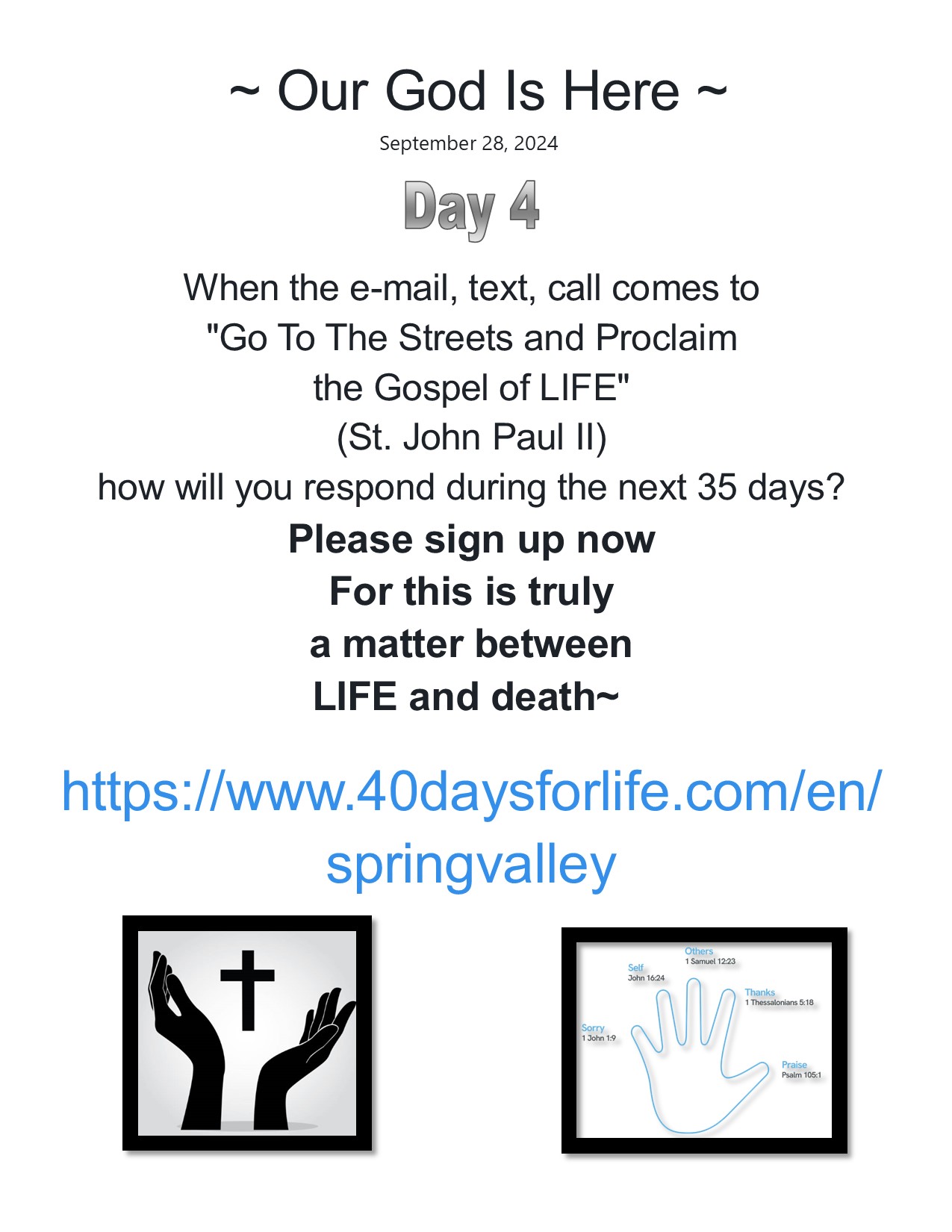 40 Days for LIFE – Fall 2024 – Day 4 Image Posted on October 2, 2024 by rocklandrtl Share this: Click to share on X (Opens in new window) X Click to share on Facebook (Opens in new window) Facebook Like Loading... Related