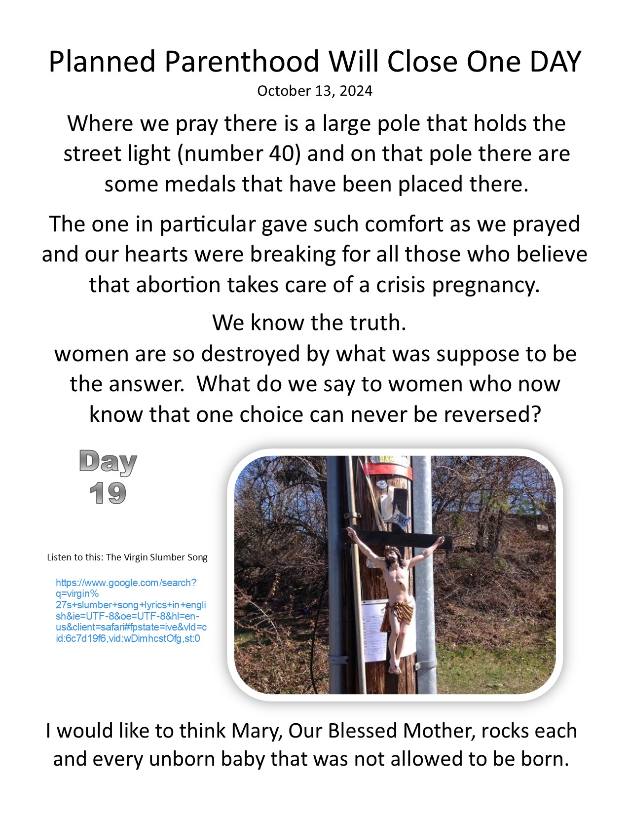 40 Days for LIFE – Day 19 Image Posted on October 16, 2024 by rocklandrtl Share this: Click to share on X (Opens in new window) X Click to share on Facebook (Opens in new window) Facebook Like Loading... Related