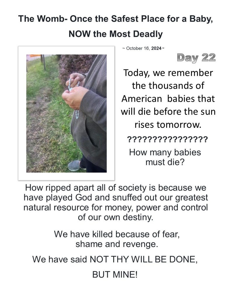 40 Days for LIFE – Day 22 Image Posted on October 20, 2024 by rocklandrtl Share this: Click to share on X (Opens in new window) X Click to share on Facebook (Opens in new window) Facebook Like Loading... Related