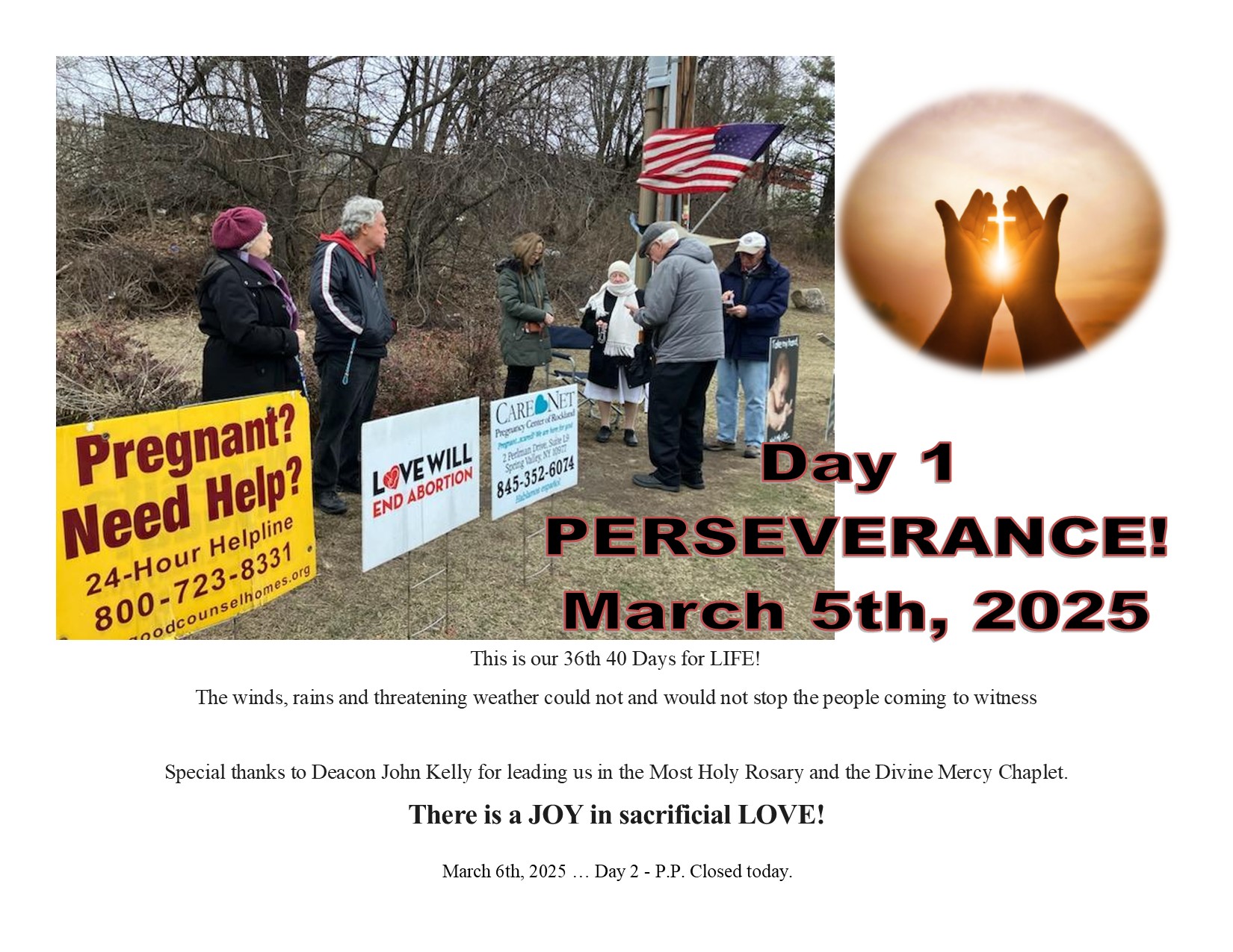 40 Days for LIFE began on Ash Wednesday ~ March 5th Image Posted on March 7, 2025 by rocklandrtl Share this: Click to share on X (Opens in new window) X Click to share on Facebook (Opens in new window) Facebook Like Loading... Related