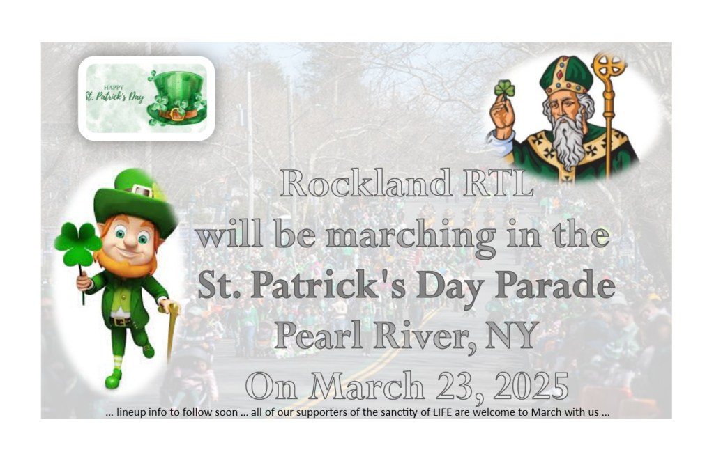 Join us to show our support for All LIFE – March in the St. Patrick’s Day Parade on March 23rd with RTL Image Posted on March 7, 2025 by rocklandrtl Share this: Click to share on X (Opens in new window) X Click to share on Facebook (Opens in new window) Facebook Like Loading... Related