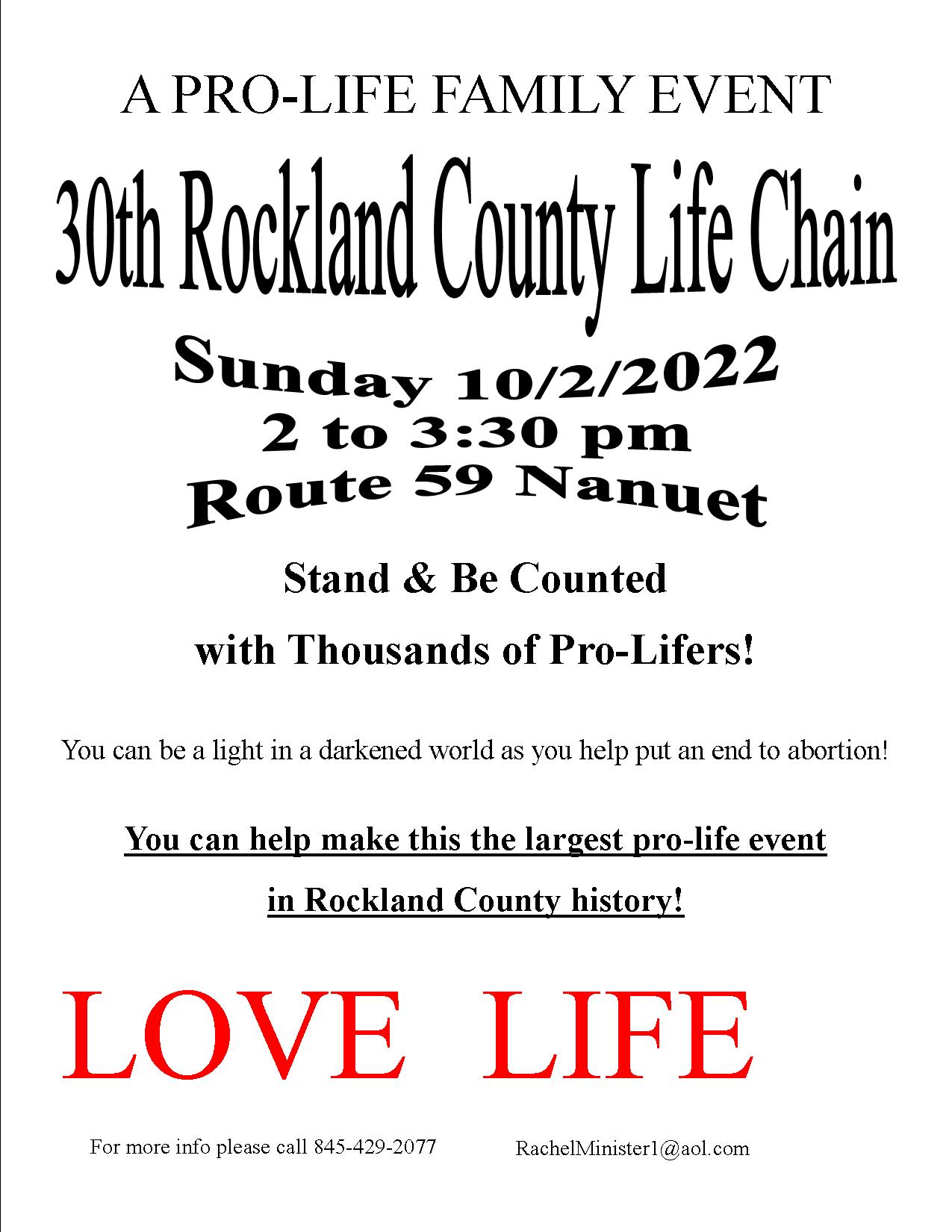 You can help make this event the largest PRO-LIFE event in Rockland County History.
