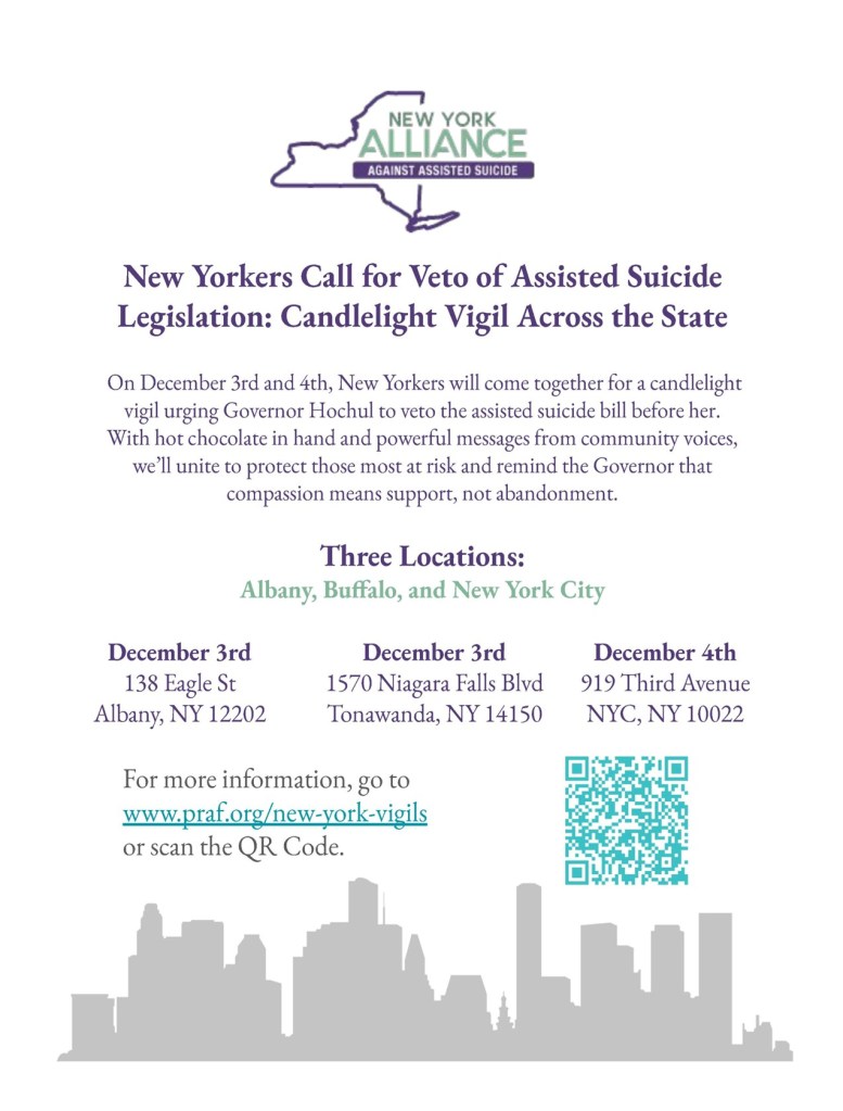 NYS Alliance Against Assisted Suicide Vigil Dec. 3rd & 4th